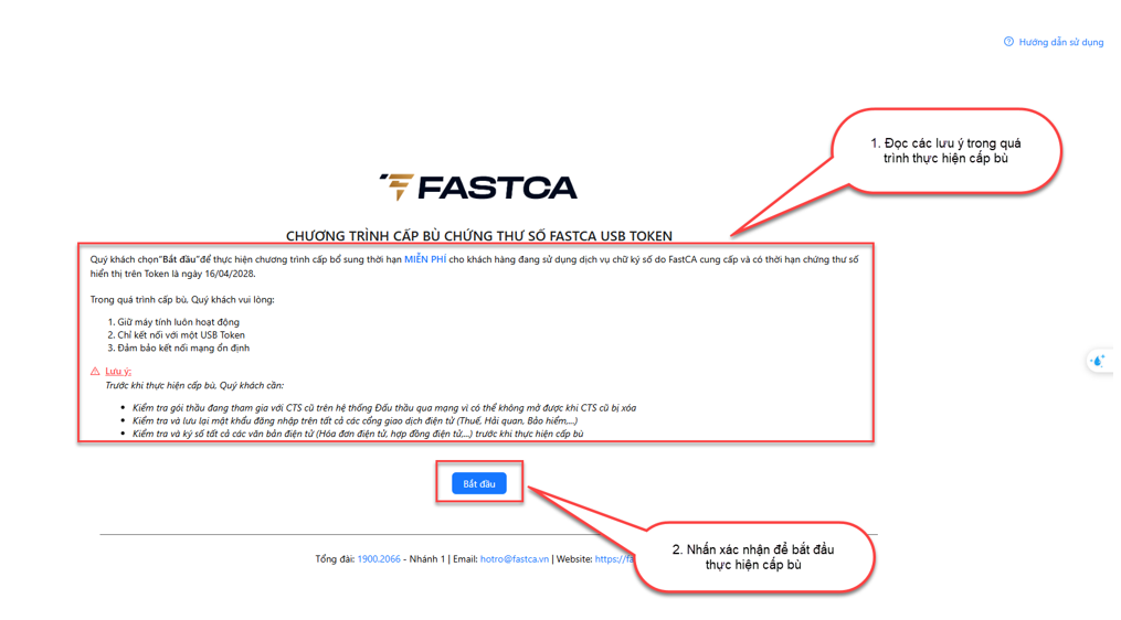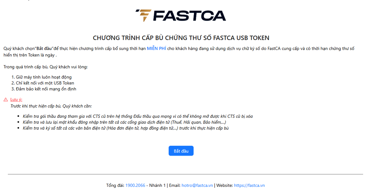 FastCA chính thức triển khai chương trình cấp bù chứng thư số miễn phí dành cho khách hàng đang sử dụng dịch vụ và có thời hạn chứng thư số trên Token hiển thị đến 22/12/2025. Đây là chương trình đặc biệt nhằm đảm bảo quyền lợi đầy đủ theo hợp đồng đã ký với FastCA.