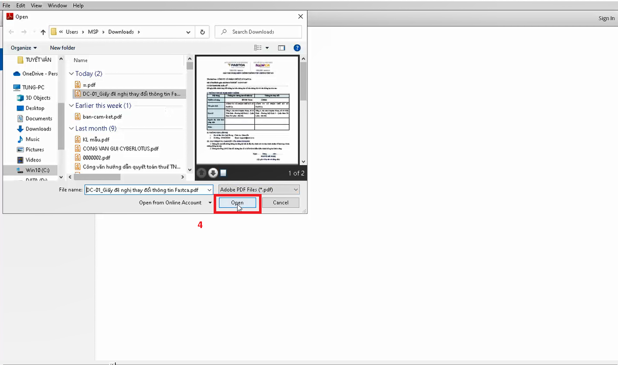 Bước 1: Mở file PDF cần ký số
