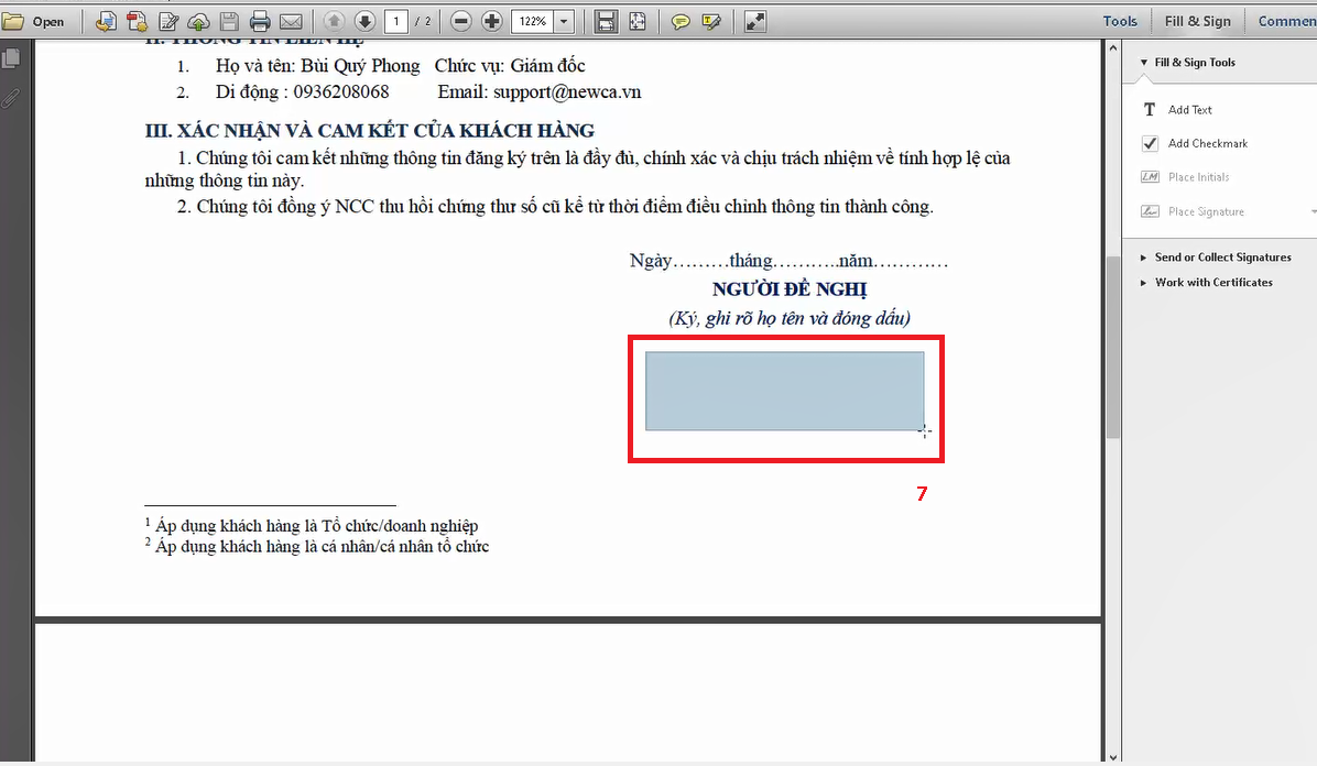 Đơn vị click vào Fill & Sign – PlageSignture