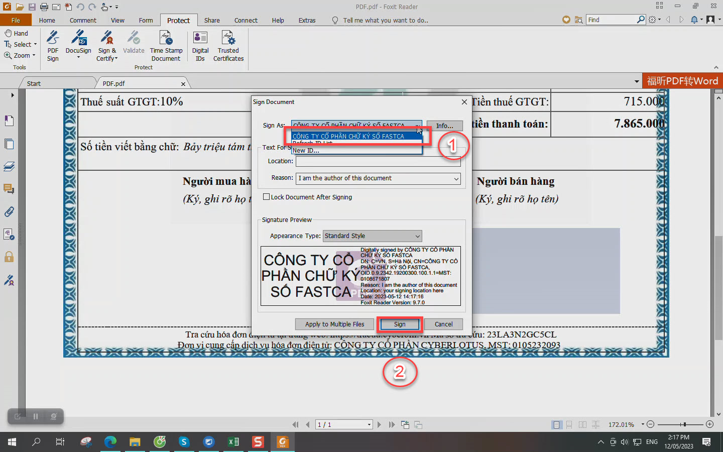 >> Xem ngay video hướng dẫn ký số trên file PDF bằng phần mềm Foxit reader